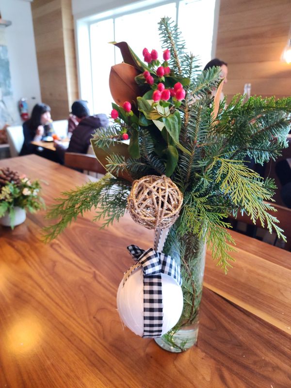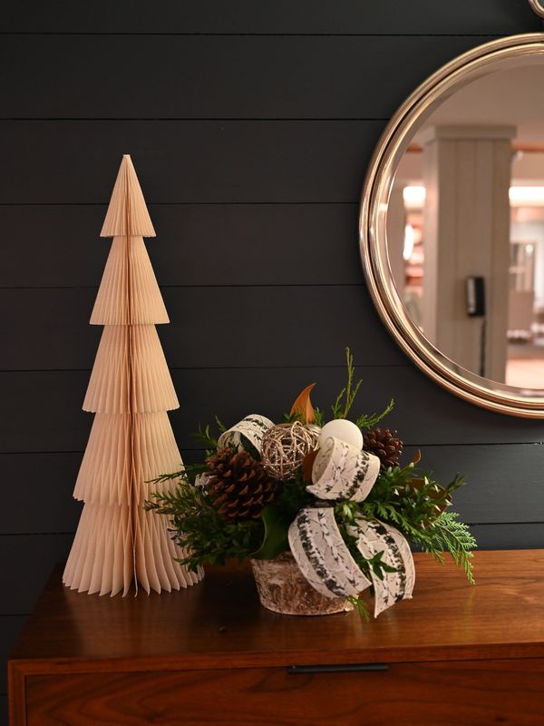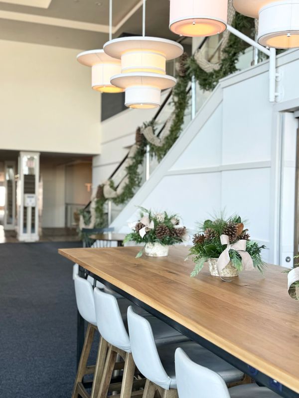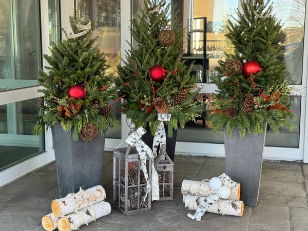 In our designs, we seamlessly blended classic holiday colors with natural elements, incorporating handcrafted paper ornaments, dried flowers, and fresh florals. By working with our local partners - Stephen Carr Landscaping, York Flowers, and Second Nature Fine Gardening & Design - we were able to bring our creative visions to life for the holiday season.