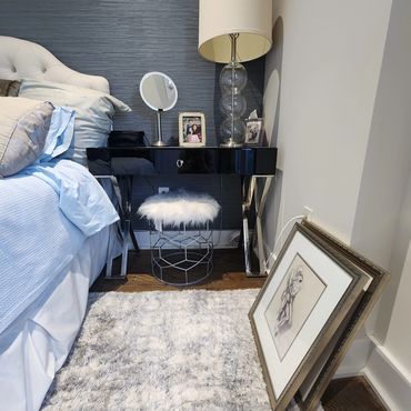 "It was a pleasure to work with Jennifer to design a master suite oasis for my city condo. Jennifer really understood what I was looking for and came up with several design options. All were so beautiful and elegant, it was hard to pick. Jennifer stepped me through the decision process to come up with a thoughtful design that incorporated everything I wanted, and other things I hadn't thought of, all while keeping my budget in mind. Her team did a wonderful job of executing the design, from electrical work to construction and installation, to the final finishing stages and the exciting reveal. I loved the final product and couldn't be happier with my newly decorated suite, it is truly an oasis for me to escape to!" - Client